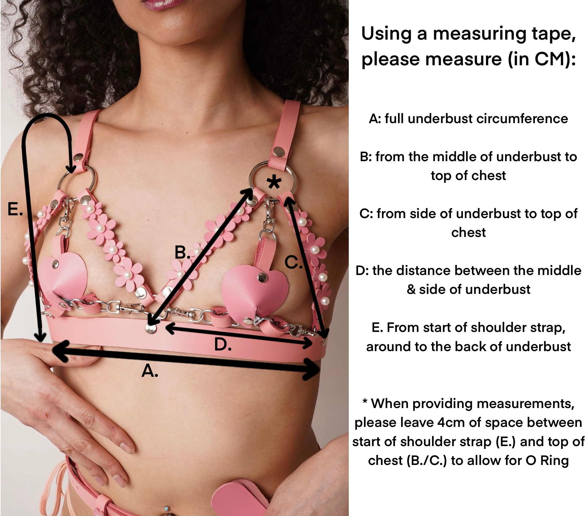 Black & white pearl blossom handmade genuine leather cage harness bra, also available to shop in a selection of colours.