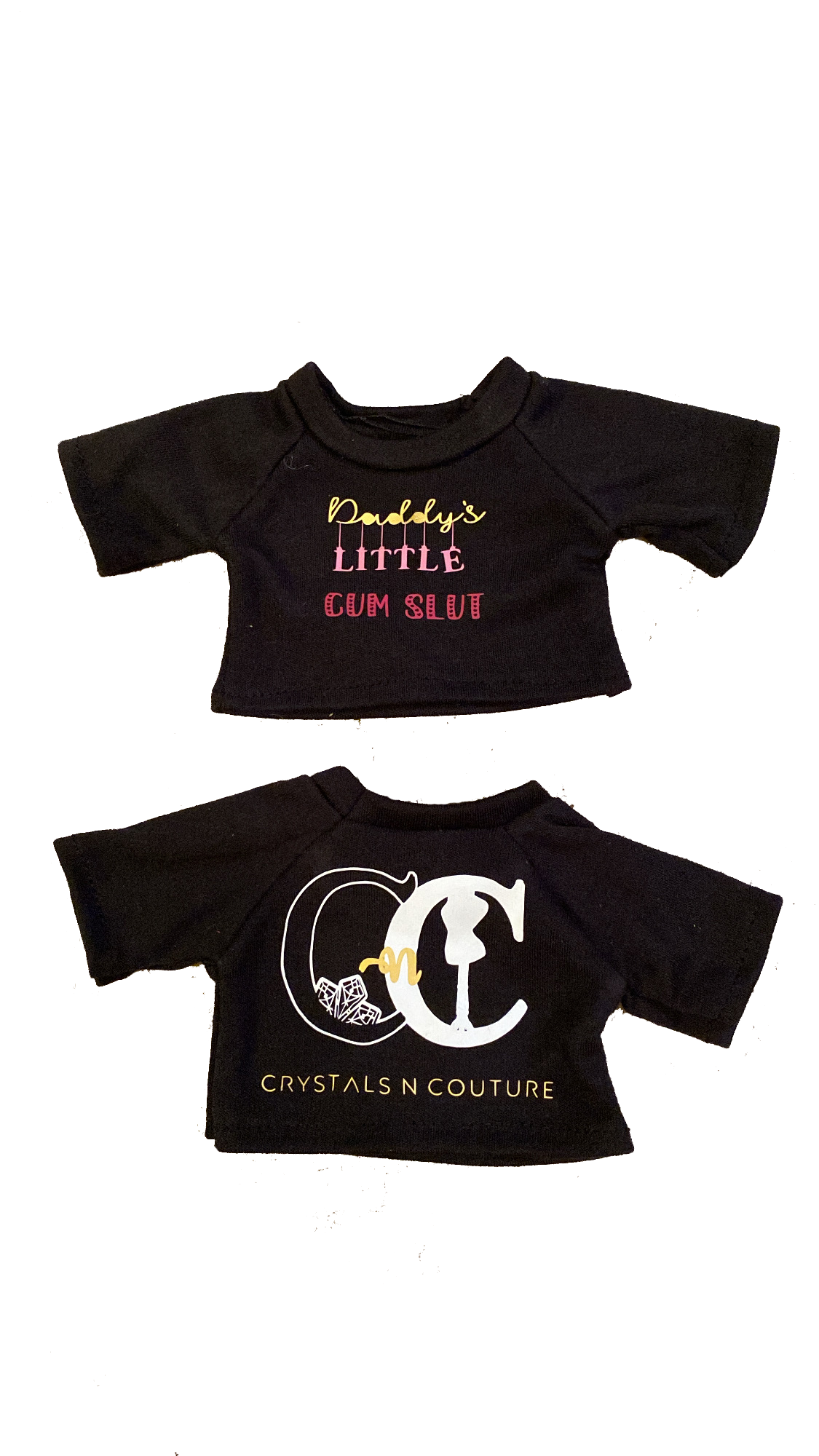 Black printed K Bear T-shirt, with a selection of kinky slogans to choose from. Suitable for your fun fetish mini me!